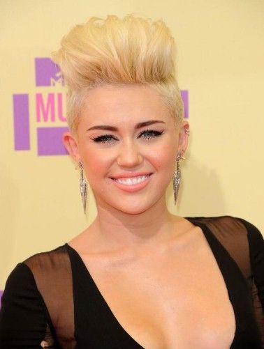 Miley a imbracat o pereche de pantaloni cu dungi verticale albe si negre, o pereche de bocanci masivi si un top negru, iar coafura a fost aceeasi cu care a obisnuit, doar ca de aceasta data se puteau observa cu usurinta radacinile mai inchise la culoare.